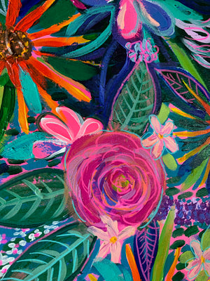 Vibrant Jungle Floral On Canvas 18 X24 The Artwerks